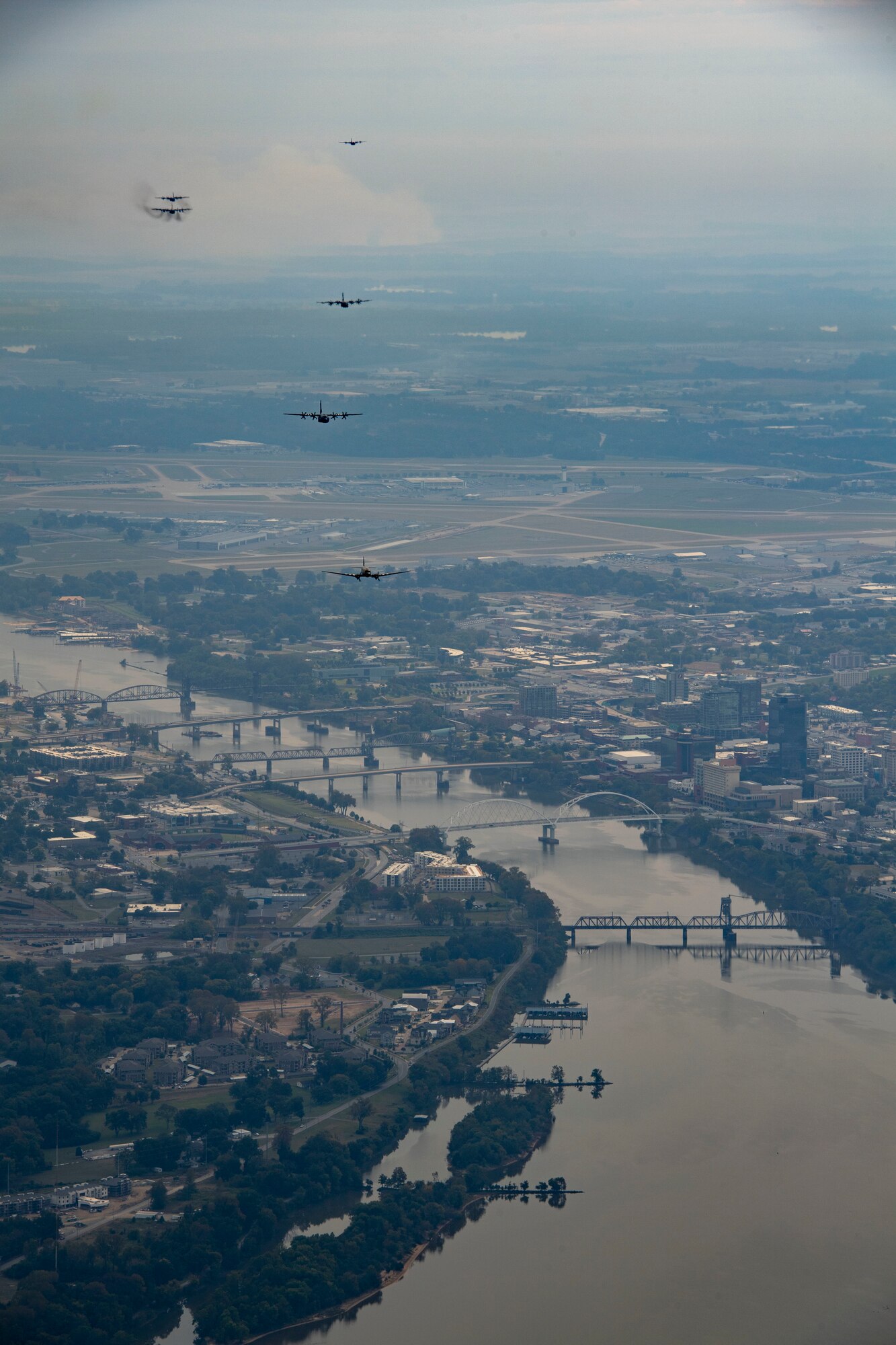 The aerial review included four C-130J Super Hercules aircraft and one C-130H Hercules flying in formation led by a vintage C-47 Skytrain. Each of the installation’s wings and mission partners, including the 19th Airlift Wing, 314th AW, 189th AW, and the 913th Airlift Group were represented with these aircraft, showcasing a unified front of the nation’s epicenter of tactical airlift, known as “The Home of Herk Nation.”
