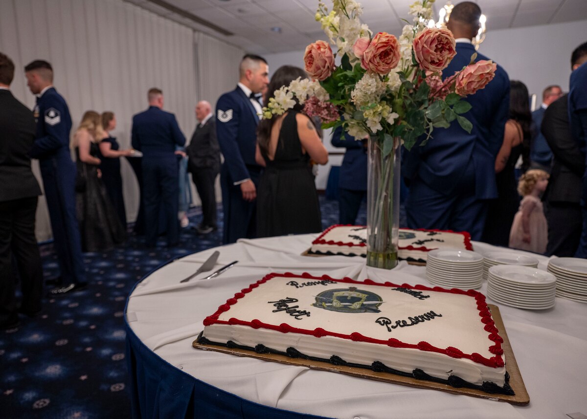 U.S. Air Force Lt. Col. Brandon J. Alford, left, commander of the Air and Space Force Honor Guards, presents Staff Sgt. Marc Garcia, executive officer for the 11th Operations Group, an Order of Praetorian certificate at Joint Base Anacostia-Bolling, Washington, D.C., June 18, 2025. Alford recognized Garcia and 13 others during an induction ceremony for the Order of the Praetorian, which honors 10% of ceremonial guardsmen each year. (U.S. Air Force photo by Staff Sgt. Jordan Powell)