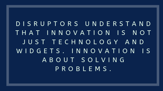 Innovators are disruptors. Disruptors understand that innovation is not just technology and widgets. Innovation is about solving problems.