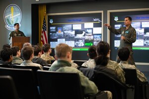 U.S. Air Force Maj. Gen. Corey Martin, 18th Air Force commander, meets with Team McChord leaders and Airmen at Joint Base Lewis-McChord, Washington, Jan. 26, 2024. The goal of Martin’s visit was to learn about Team McChord’s initiatives, accomplishments, goals for the upcoming year and to recognize